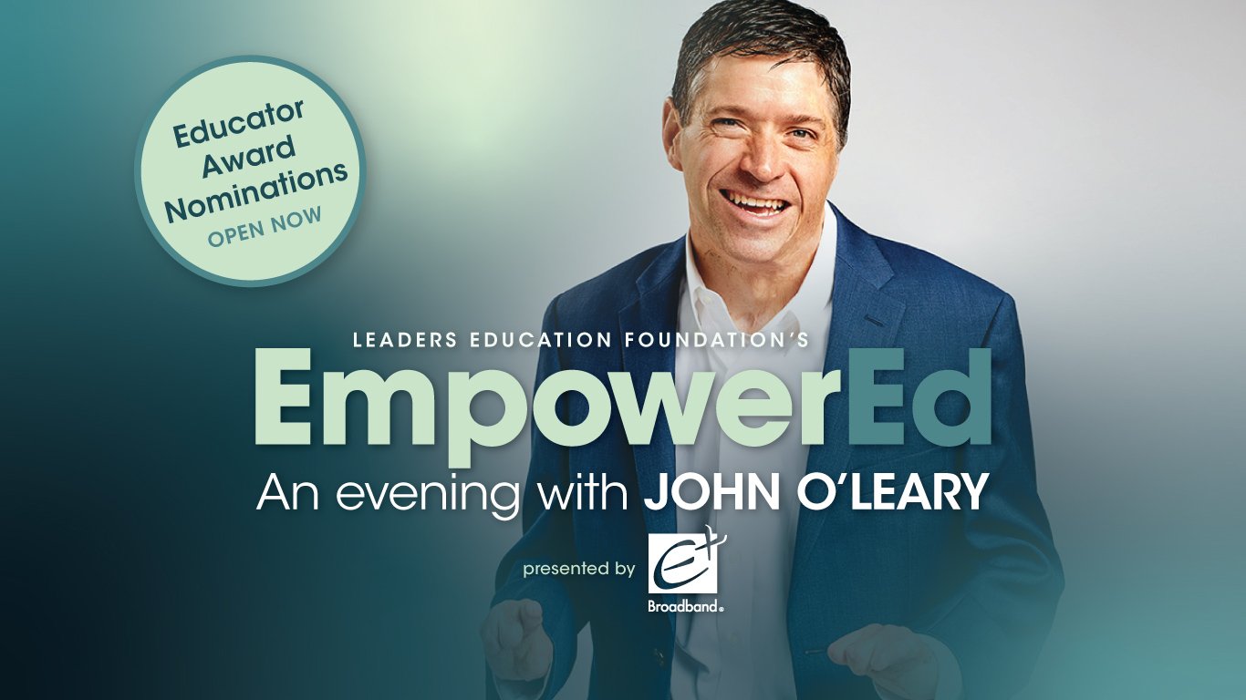 Nominate someone for the EmpowerEd Educator Awards and find event details, table reservations, and sponsorship info at leadersgives.org/events for EmpowerEd: An Evening with John O’Leary.